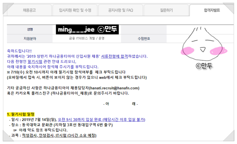 사실 이 전까지는 IBK 말고는 서류 붙은 곳이 없었기 때문에 정말 기대 안 했었는데 깜짝 놀랐던 기억이 난다.