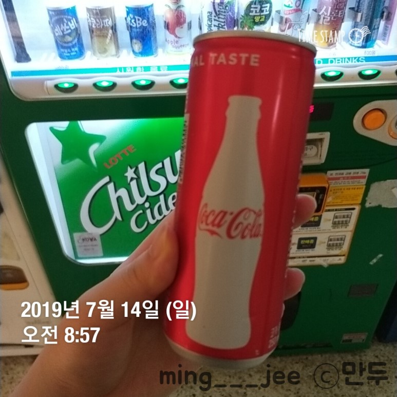저번에 콜라를 사먹었던 그 자판기에서 이 날도 똑같이 콜라를 사먹었다.