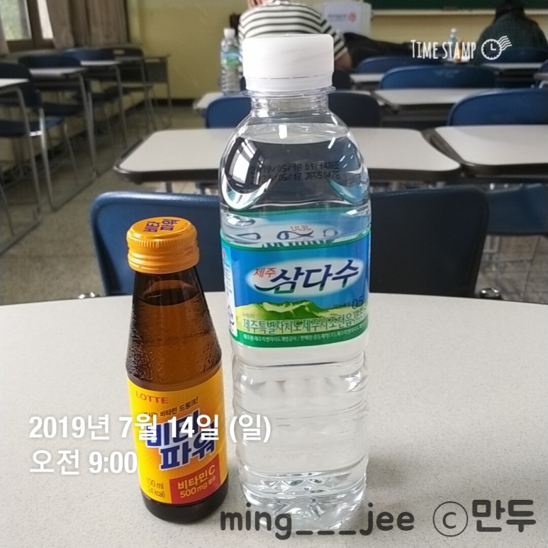 고시장까지 올라오는데 이런 비타민 음료와 생수를 하나씩 나눠주셨다. (콜라 사지 말걸..)