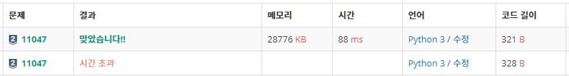 | [BOJ] 11399. ATM (Python3) (0) | 2021.04.23 |