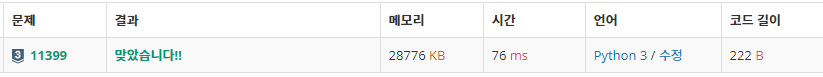 www.acmicpc.net/problem/11399 (level: Silver III)