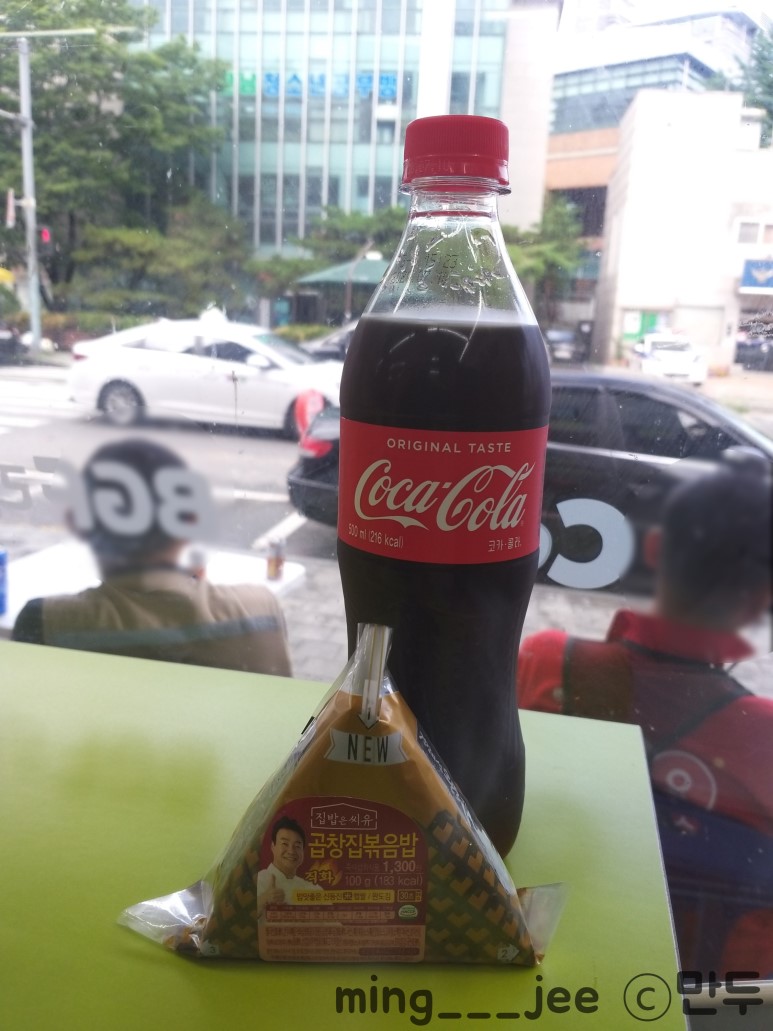 면접 끝나고 기가 다 빨려서 (다과랑 음료 준비되어 있긴 한데) 편의점에서 삼김이랑 코카콜라로 힐링했다.