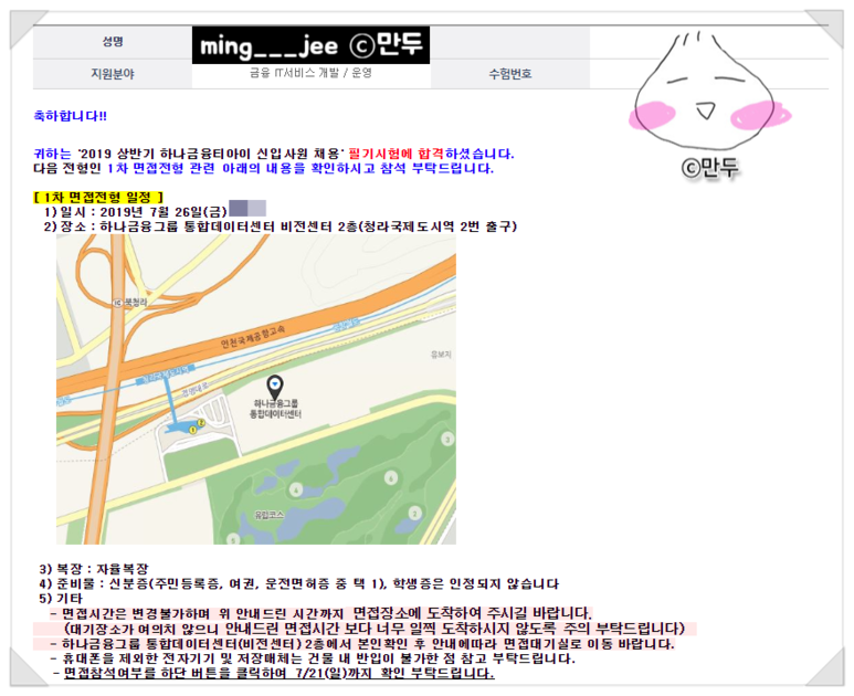 조금 갑작스럽긴 했다. 심지어 필기시험 결과 발표 후 일주일 뒤에 인천 청라로 가서 면접을 봐야했다.