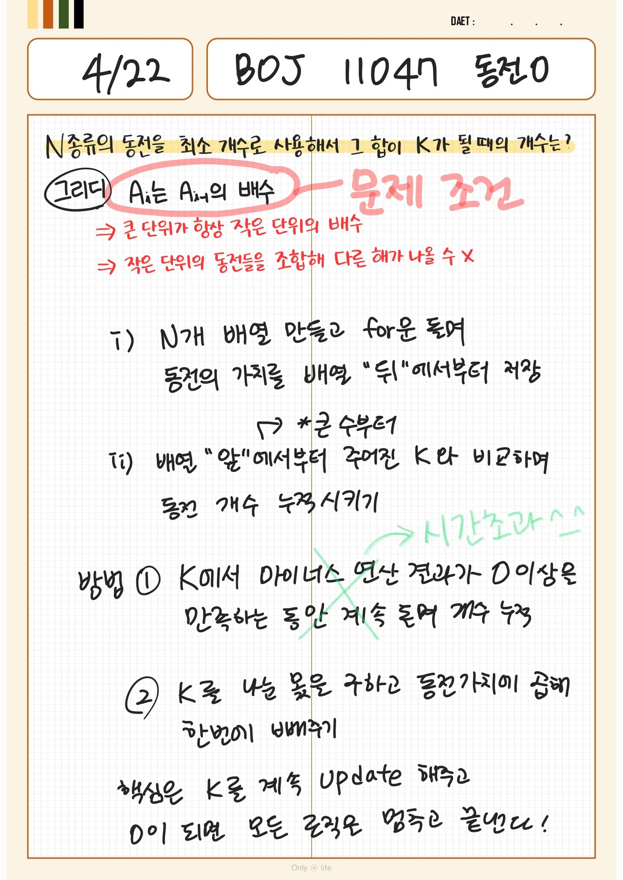 cf> [BOJ] 11047. 동전 0 (Python3) 풀이: ming-jee.tistory.com/137