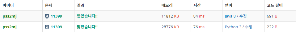 cf> [BOJ] 11399. ATM (Python3) 풀이: ming-jee.tistory.com/138