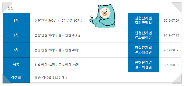 ※ 자세한 사항은 공고를 읽어보시기를 추천드립니다. (위 사진은 일부만 잘라서 올렸고, 2019년 공고문 풀버전은 댓글에 사진첨부하도록 하겠습니다.) (티스토리는 댓글로 사진을 올릴 수가 없어서 채용공고 풀버전이 궁금하신 분은 네이버 블로그에 있는 원본 글에 달린 댓글로 확인부탁드립니다.)