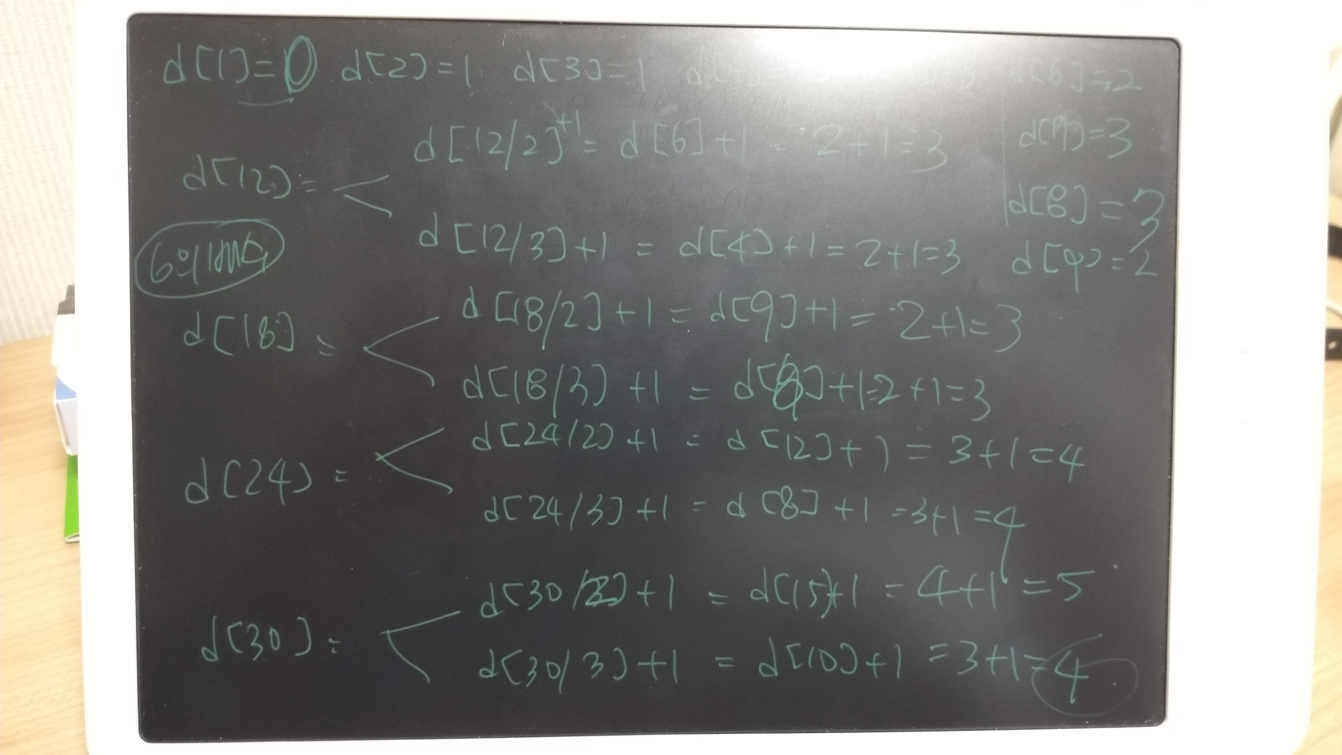 즉, 기본적으로 d[n] = d[n-1] + 1 라는 점화식을 통해 연산을 해주지만 N이 2의 배수이거나 3의 배수일 때는 각각 d[N/2] + 1 또는 d[N/3] + 1 와 같은 형태로 계산해준 뒤, 둘 중 최소인 값을 취하면 되겠다. 이제 슬슬 답에 거의 다다른 것 같다.🤗🎉